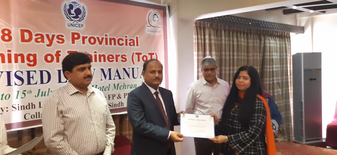 8 days training of trainers on revised LHW manual from 8 to 15 July 2019 at hotel mehran karachi